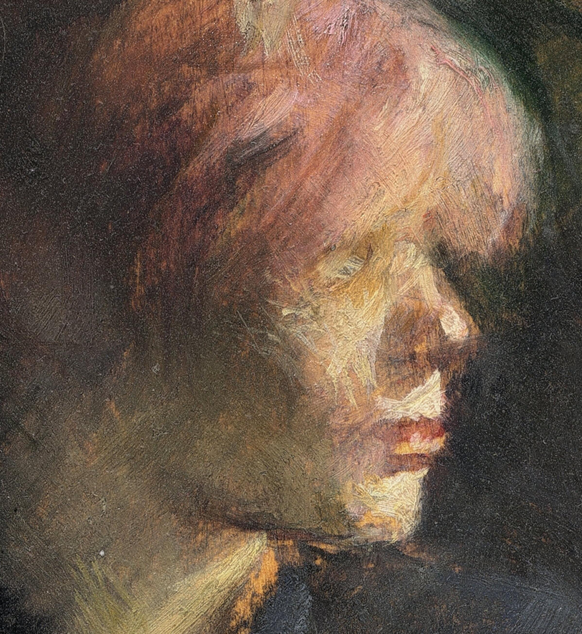 Carmen Gaudin. (detail) (1885), Henri de Toulouse-Lautrec (1864-1901, French). National Gallery of Art, Washington, DC. Oil on wood. 23.8 x 14.9 cm (9 3/8 x 5 7/8 in.)Extreme closeups of brushwork help you see how painters achieve their effects. You'll get plenty of extreme closeups like this in Learn Paint Share.